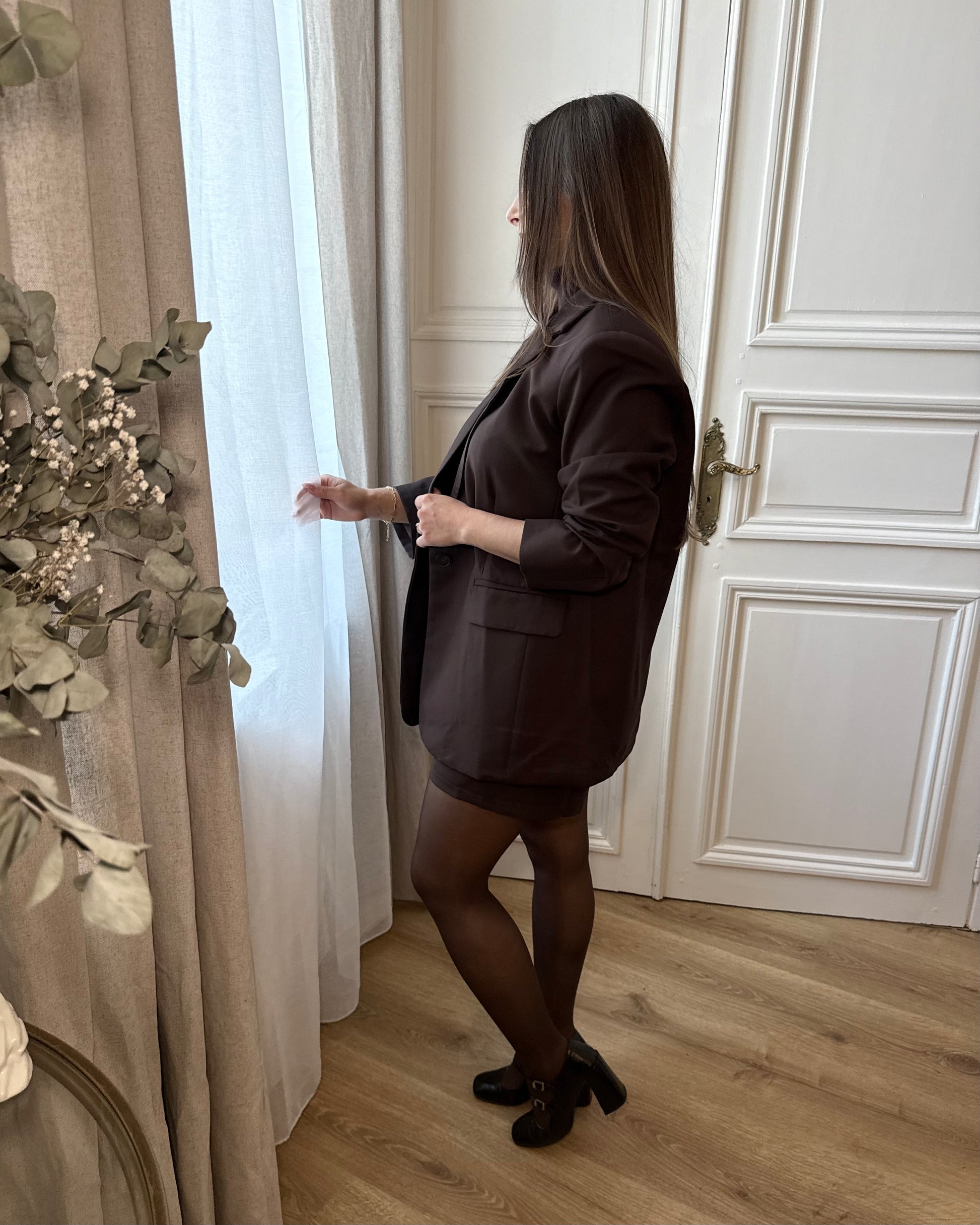 Ce blazer oversize est l'allié parfait pour un look à la fois tendance et effortless. Sa coupe ample apporte une allure moderne et décontractée tout en gardant l'élégance d'un classique tailoring. En noir pour un style intemporel ou en marron pour une touche plus chaleureuse, il se porte aussi bien sur un jean avec des mocassins pour un look du quotidien que sur une robe ou short pour une silhouette plus sophistiquée.