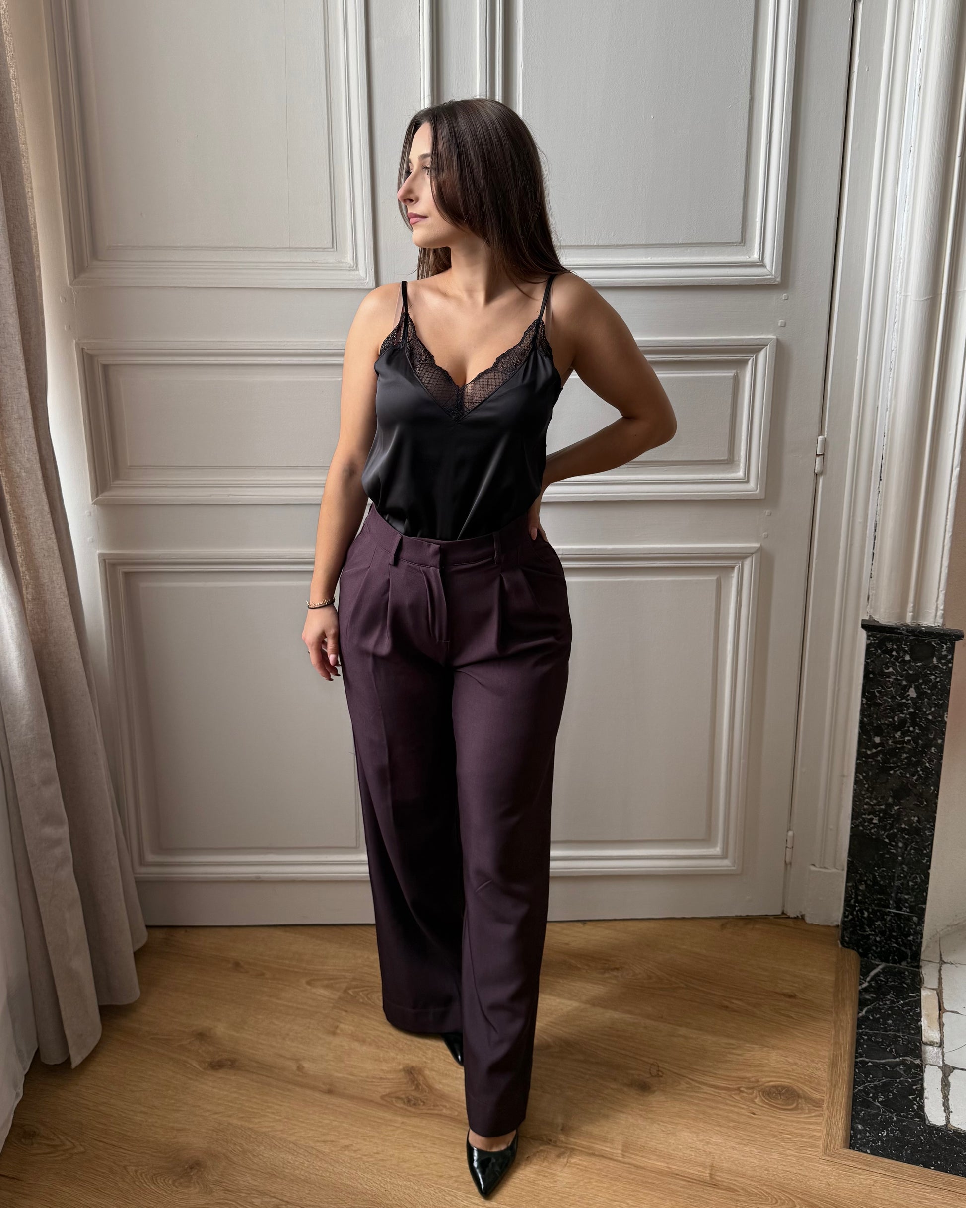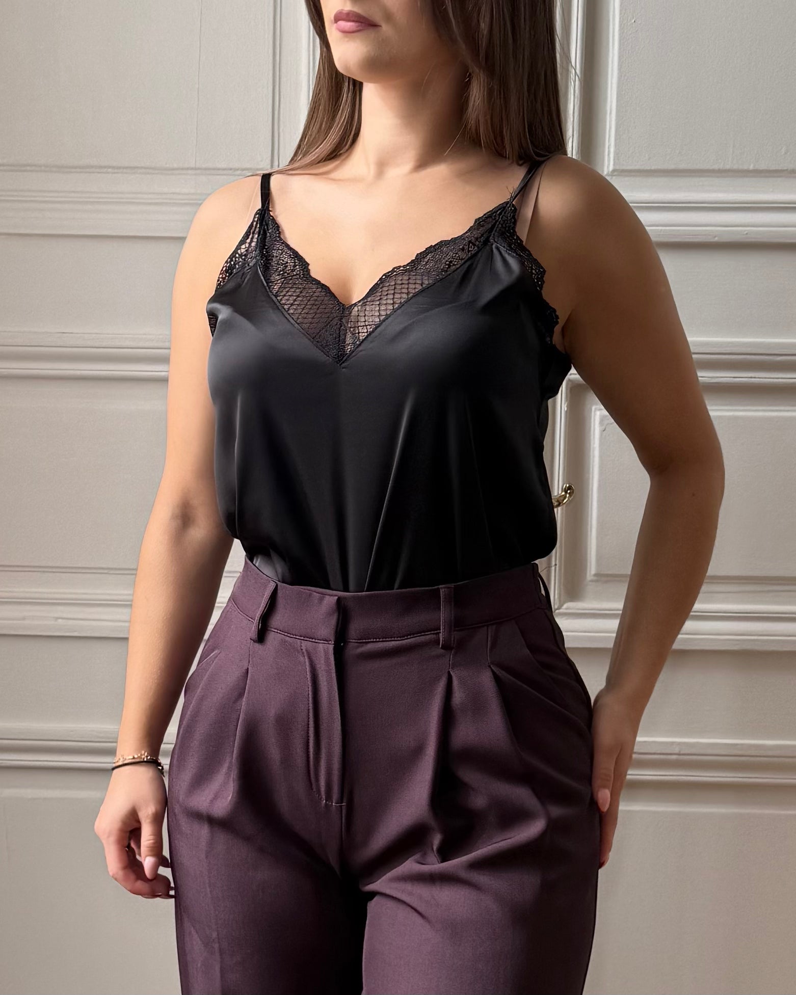 Ce caraco satiné est une pièce élégante et raffinée, idéale pour apporter une touche féminine et sophistiquée à vos tenues. Sa coupe droite flatte la silhouette, tandis que la délicate dentelle au niveau du décolleté ajoute un détail romantique et chic. Polyvalent, il se porte aussi bien seul qu’en layering sous un blazer ou une chemise ouverte. Disponible en noir, lie de vin, beige et écru pour s’adapter à toutes vos envies de style.