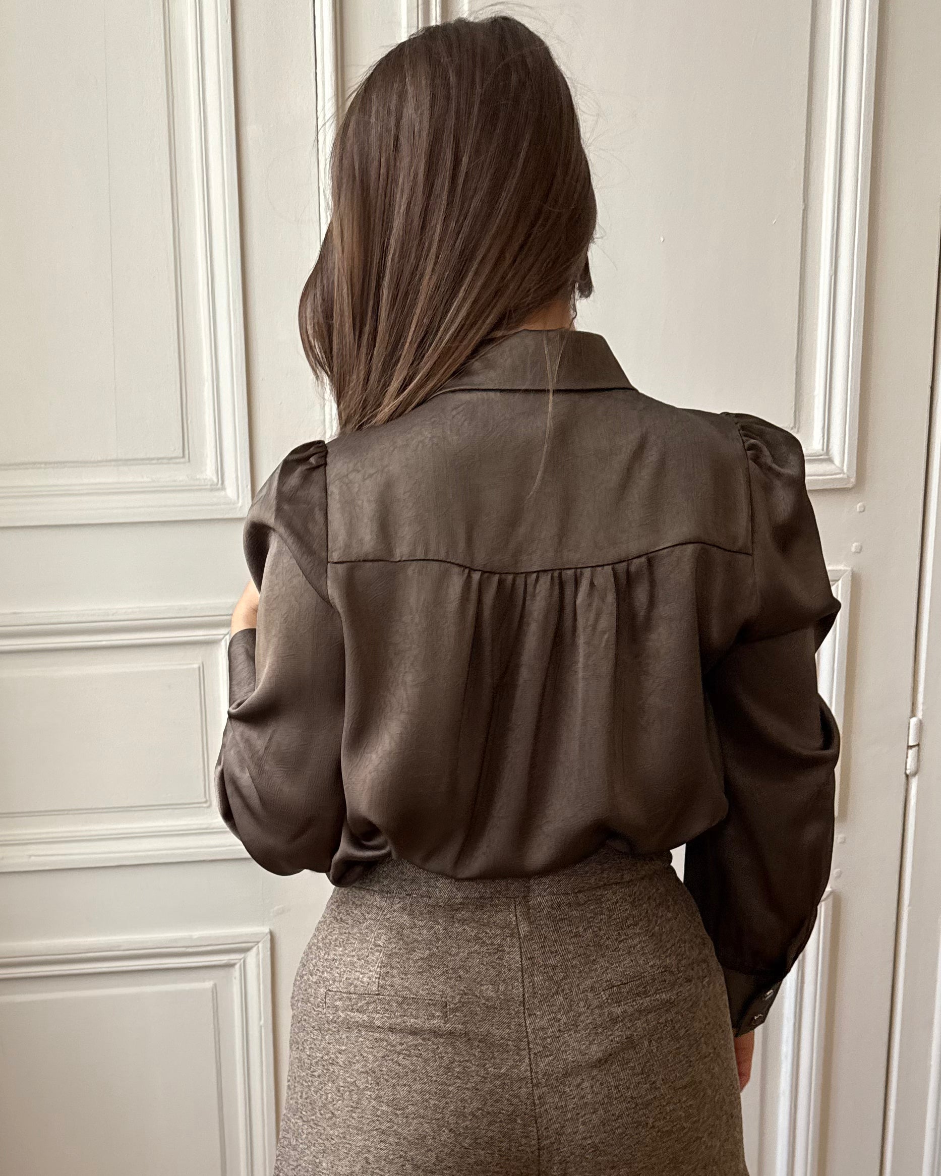 Cette chemise satinée incarne l'élégance féminine avec une touche moderne. Sa coupe courte et ample se prête parfaitement aux bas taille haute, que ce soit pour la rentrer ou la laisser flotter pour un look décontracté. Les fronces aux épaules soulignent la délicatesse du model, tandis que les cinq coloris proposés permettent d'adapter la pièce à différents styles et envies. Une chemise versatiles qui s'impose comme un essentiel chic de la garde-robe.