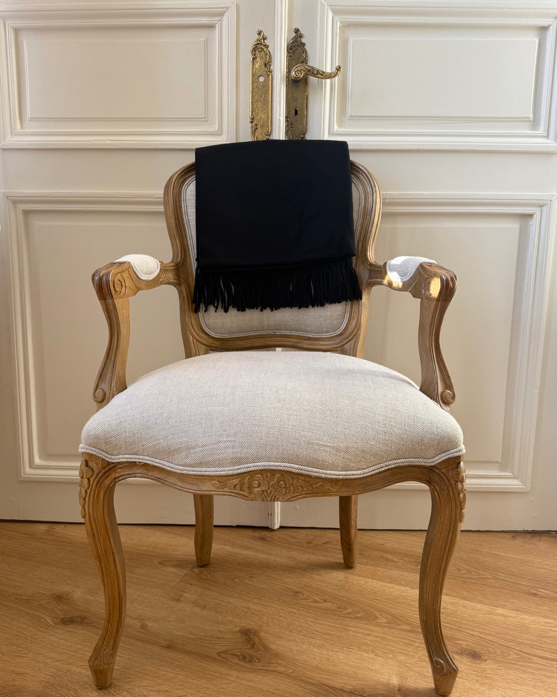Ses dimensions généreuses permettent de la porter de différentes façons, autour du cou ou simplement posée sur les épaules. Disponible en noir et en taupe, elle s’adapte facilement à tous les styles et toutes les saisons fraîches.