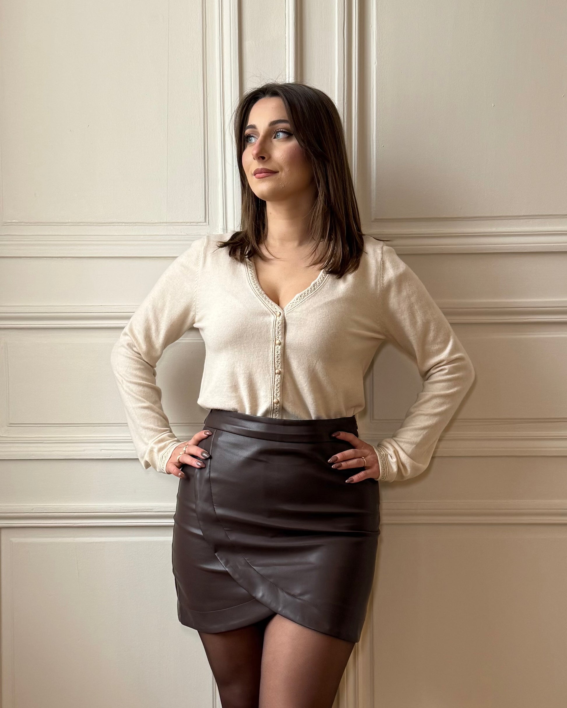 Ce gilet fin écru se distingue par sa douceur exceptionnelle grâce à sa part de cachemire, qui apporte une sensation délicate et chaleureuse au porté. Léger mais luxueux, il offre un confort incomparable tout en conservant une allure élégante.